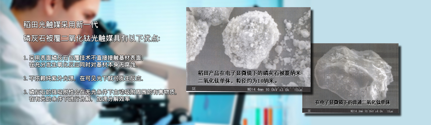 在認識【光觸媒】之前,要先了解什么是【觸媒】。觸媒是日語,翻譯成中文叫催化劑。催化劑是能在化學反應中加速反應速率,而本身在反應前后并不發(fā)生變化的物質(zhì)。光觸媒是一種以納米級二氧化鈦為代表的具有光催化功能的光半導體材料的總稱。它涂布于基材表面,在光線的作用下,產(chǎn)生強烈催化降解功能:能有效地降解空氣中有毒有害氣體;能有效殺滅多種細菌,并能將細菌或真菌釋放出的毒素分解及無害化處理;同時還具備除臭、抗污、凈化空氣等功能。 稻田光觸媒采用【磷灰石被覆納米二氧化鈦分子結(jié)構(gòu)】,具有吸附、分解、去除、無毒化的特質(zhì)。表面磷灰石包覆技術(shù)不直接接觸基材表面,在充分發(fā)生氧化反應的同時對基材本身無腐蝕。其中的【磷灰石】成分,具有強大的吸附能力,可以隨時吸附空氣中的異味源、細菌、病毒等有害物質(zhì),再交由【二氧化鈦】在光源下進行分解反應,因此能夠24小時吸附、分解